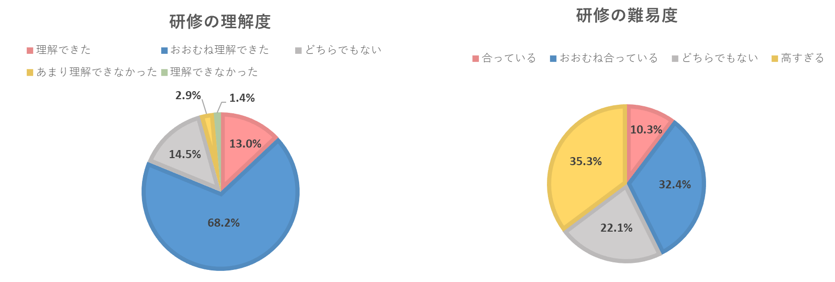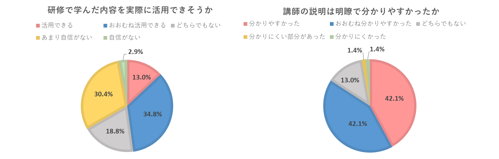 - ・研修のペースや進行自体は良く、全体として分かりやすかった。
