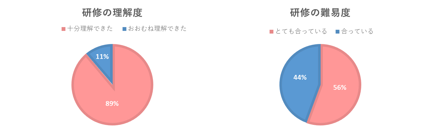 - アンケートでは、「研修の理解度」は全員が内容を理解できたことがわかります。